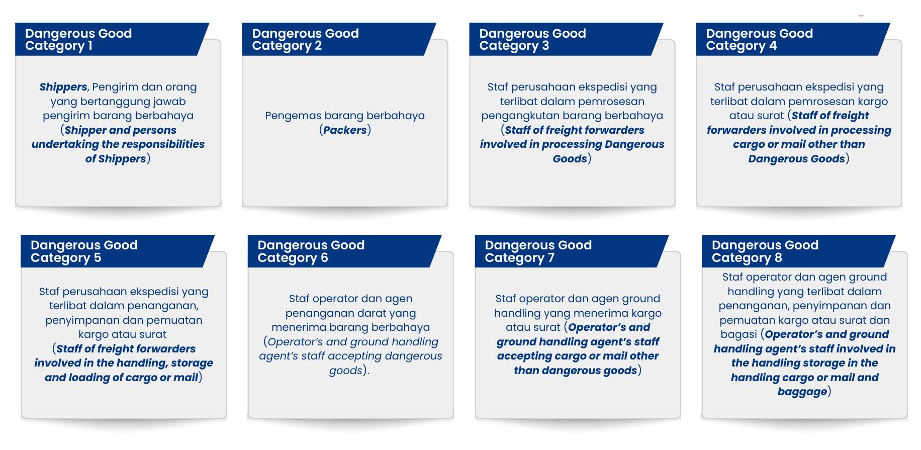 Adalah barang atau bahan yang dapat membahayakan kesehatan, keselamatan, harta benda dan lingkungan. Barang - barang berbahaya dibagi menjadi sembilan kategori (disamping beberapa subkategori) atas dasar karakteristik kimia tertentu yang menimbulkan resiko.